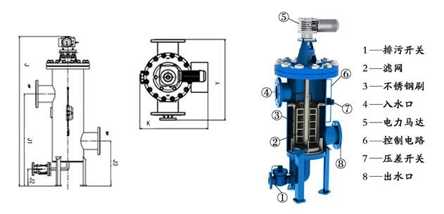 過(guò)濾屬于水的凈化過(guò)程中不可缺少的處理手段,用于攔截水中的雜質(zhì),以凈化水質(zhì)或保護(hù)系統(tǒng)中其他設(shè)備的正常工作。普通網(wǎng)式過(guò)濾器因其過(guò)濾效果好、阻力小而廣泛應(yīng)用于水源過(guò)濾、工業(yè)循環(huán)水系統(tǒng)等領(lǐng)域,但其缺點(diǎn)是納污量小、易受污物堵塞、清洗工作復(fù)雜,必須對(duì)設(shè)備進(jìn)行拆卸才能實(shí)現(xiàn)對(duì)過(guò)濾部分的清洗,無(wú)法監(jiān)控過(guò)濾器的狀態(tài),而且受人為因素影響比較大,使整個(gè)系統(tǒng)的自動(dòng)化程度很低。全自動(dòng)自清洗過(guò)濾器具有對(duì)原水進(jìn)行過(guò)濾并自動(dòng)對(duì)濾芯進(jìn)行清洗排污的功能,且清洗排污時(shí)系統(tǒng)不間斷供水。該設(shè)備與以往的過(guò)濾器相比具有自動(dòng)化程度高,處理量大,可自行清洗排污,并不間斷供水,應(yīng)用面廣泛等優(yōu)點(diǎn)。