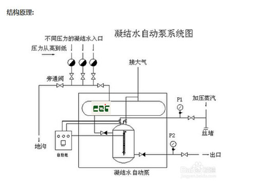 加壓室:當(dāng)加壓室裝滿凝結(jié)水時(shí),在蒸汽或壓縮空氣作用下將其加壓輸出。